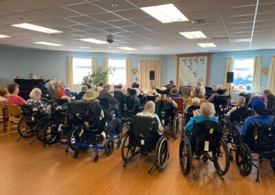 - One-on-one visits with residents – reminiscing, chatting, reading the newspaper, writing letters, or looking at photos